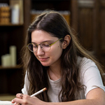 Portrait of Dhanai Anthmidou-Friel. Dhanai Anthmidou-Friel is an English major whose research focuses on Sappho. She began researching as a way to become more involved at USU and found it interesting to work in an interdisciplinary field where one interest area connects to multiple projects. “I’ve learned to value my work, my expertise, and my competencies, and to understand they’re applicable and I should be proud,” she shared. Through research, Anthmidou-Friel has strengthened her technological literacy by developing an information-tracking system across multiple spreadsheets and refined her communication skills, noting that a large part of research is communicating with others. Due to slim resources about Sappho, she’s also learned how to make the most of what is available and tap into her cross-cultural background, which has shaped her research and personal growth. Anthmidou-Friel noted one of the best parts is frequently learning new things, making connections within their project, and watching her community grow with various outreach opportunities. Sappho’s work is culturally important, especially related to queer women, poetic history, epics, and mythology. There aren’t any surviving artifacts about who Sappho was, but Anthmidou-Friel has enjoyed piecing together the fragments that remain to better understand her life and legacy.