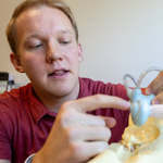 Portrait of Alan Baker. Alan Baker is a Communication Disorders major. Where he is researching the impact of hearing loss in adults and how hearing aid intervention could improve psychosocial health. “It’s a hard thing to deal with,” Baker noted, “but better to prepare future audiologists to help counsel will lead to better ability to care for them as a whole.” Working with his mentor has helped Baker become more comfortable stepping outside his comfort zone and trying new things. He shared that it’s been exciting to explore uncharted territory and see how research continually builds off everyone’s effort and work. Baker’s advice for students interested in research is to ask around and asking several professors to find potential research opportunities. His involvement in research has helped to clarify his future goals and better understand what future endeavors he wants to pursue.